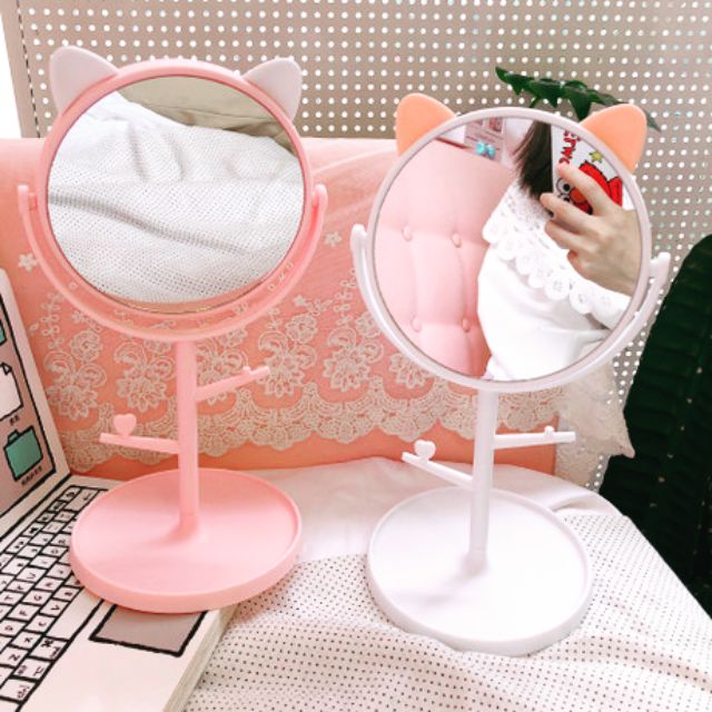 Nhà cửa & Đời sống > Trang trí nhà cửa > Gương || Gương trang điểm để bàn tai gấu (treo được phụ kiện)Còn hàng