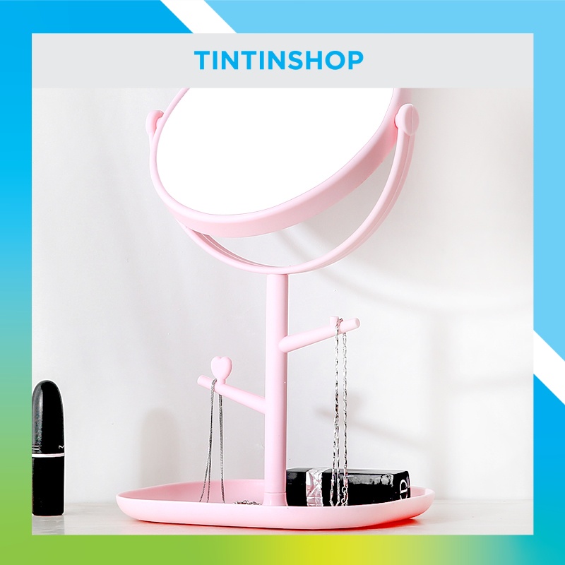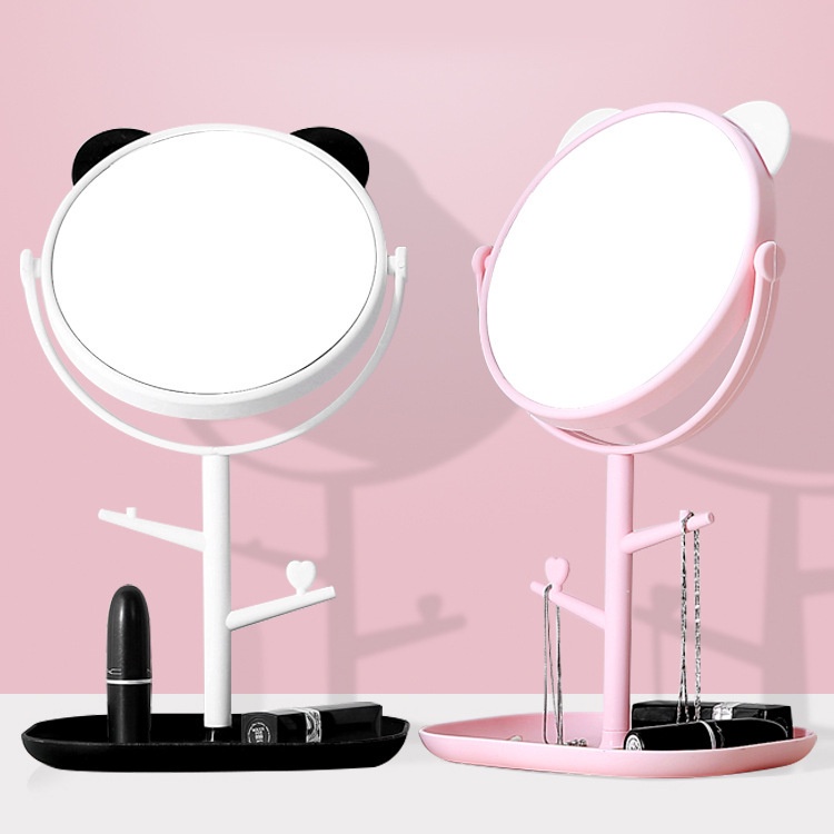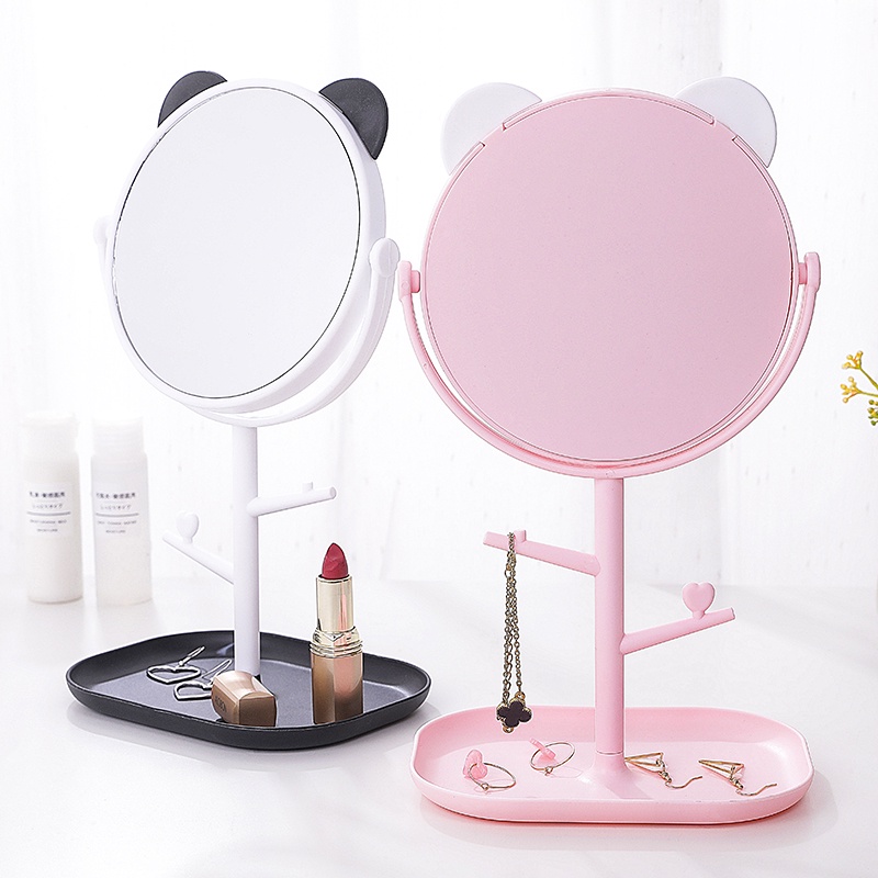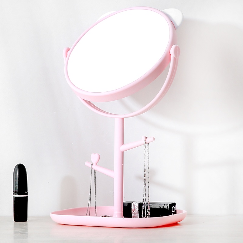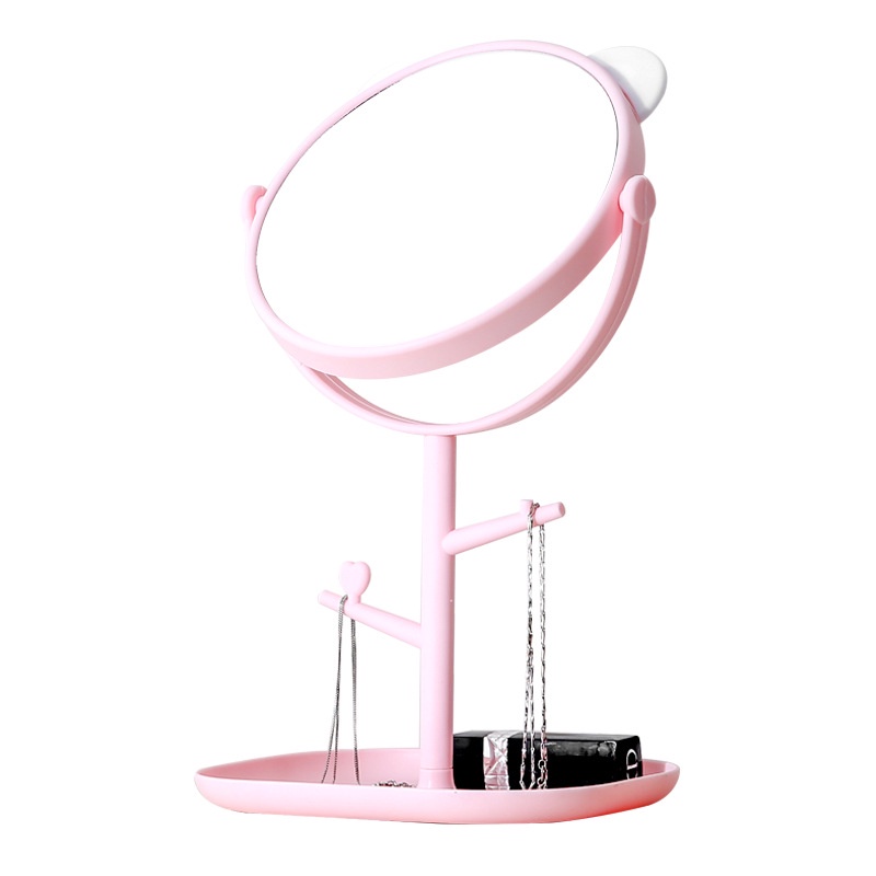Gương trang điểm để bàn tai mèo xoay 360 độ có 2 tay treo trang sức
