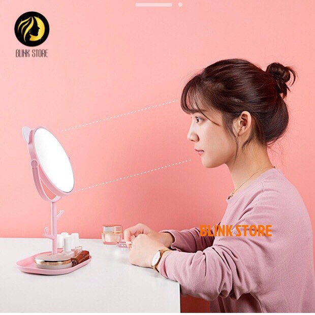 Nhà cửa & Đời sống > Trang trí nhà cửa > Gương || Gương trang điểm để bàn tai mèo đáng yêu 2 trong 1 kèm khay kệ trang sức mỹ phẩm tiện lợiCòn hàng