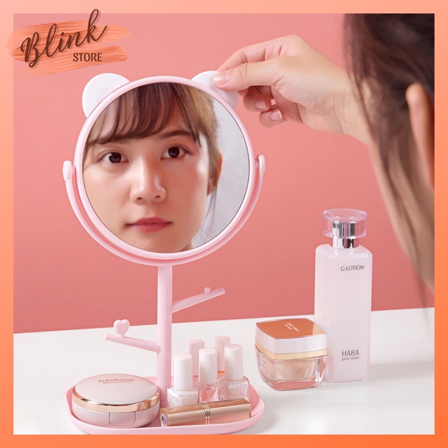 GƯƠNG TAI THỎ 2 TRONG 1 ( KÈM KHAY KỆ TREO TRANG SỨC ) TIỆN LỢIGương để bàn là một vật dụng không thể thiếu trong góc trang điểm của bất kể bạn nữ nào