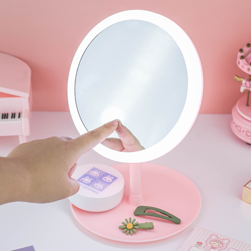 - Gương tròn để bàn có đèn led cảm ứng có thể xoay 90 độ - Trang điểm được trong mọi hoàn cảnh - kể cả nơi tối không có đèn không có điện