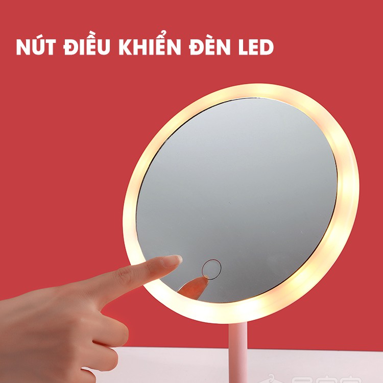 - Gương tròn để bàn có đèn led cảm ứng Sạc điện bằng cổng USB ( Không cần dùng pin) - Thời gian sử dụng 2-3 ngày