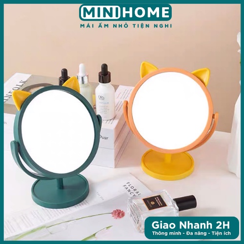 Gương Trang Điểm Để Bàn Xoay 360 Độ TAI MÈO