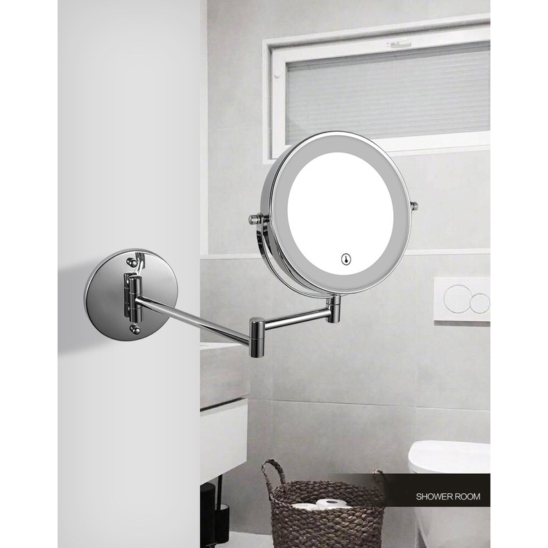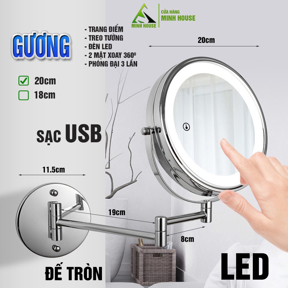 Nhà cửa & Đời sống > Trang trí nhà cửa > Gương || Gương trang điểm đèn LED phóng đại x3, xoay 360, 2 mặt, treo tường, đế tròn Minh HouseCòn hàng