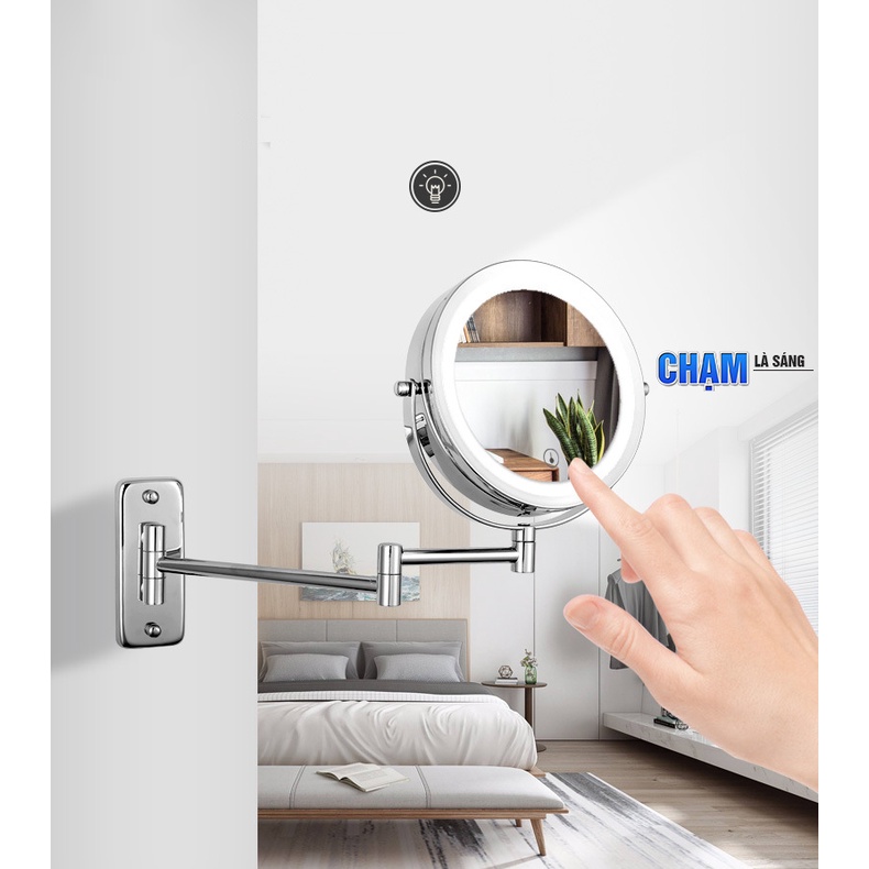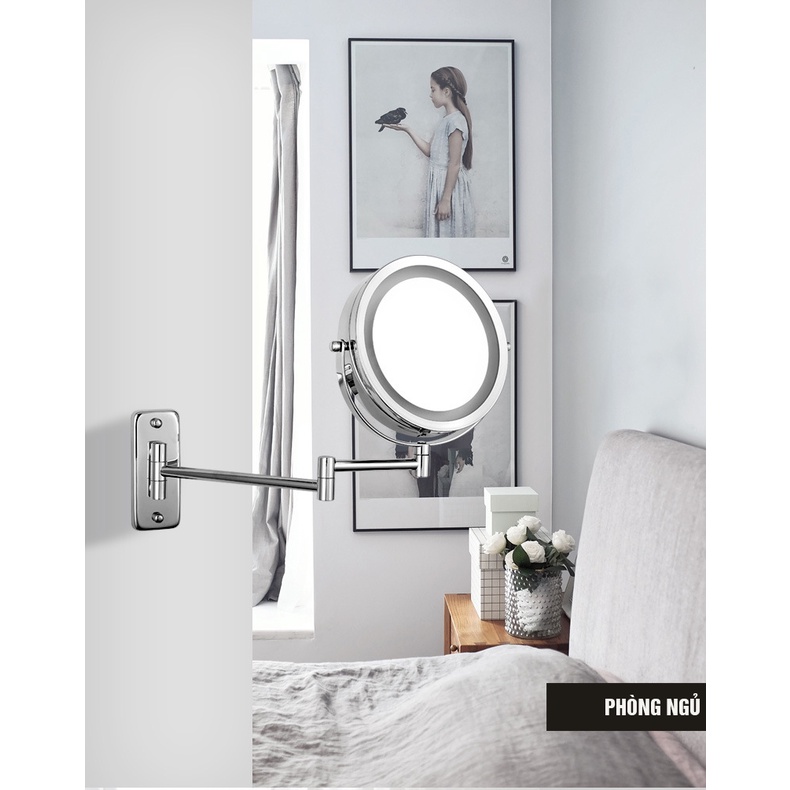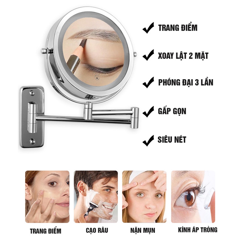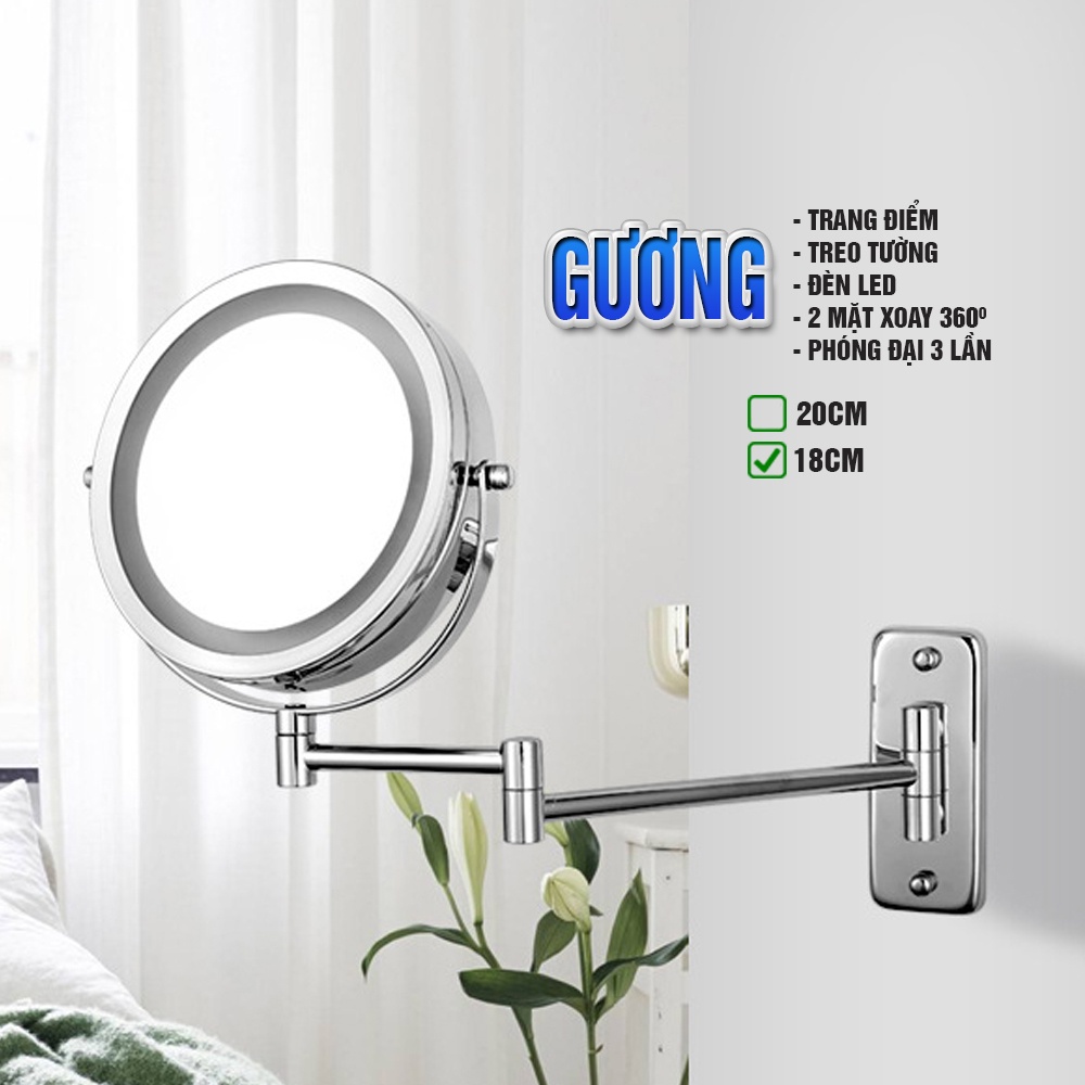 Nhà cửa & Đời sống > Trang trí nhà cửa > Gương || Gương trang điểm đèn LED phóng đại x3, xoay 360, 2 mặt, treo tường, đế chữ nhật Minh HouseCòn hàng