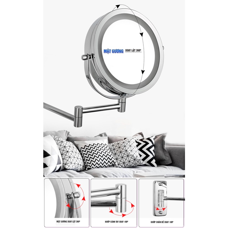#guong #trang #diem #led #phong #dai #zoom #x3 #minh #house #minhhouse #guongtrangdiem #inox #crom #thep #khong #gi #treo #tuong #cam #ung #xoay #360 #2mat