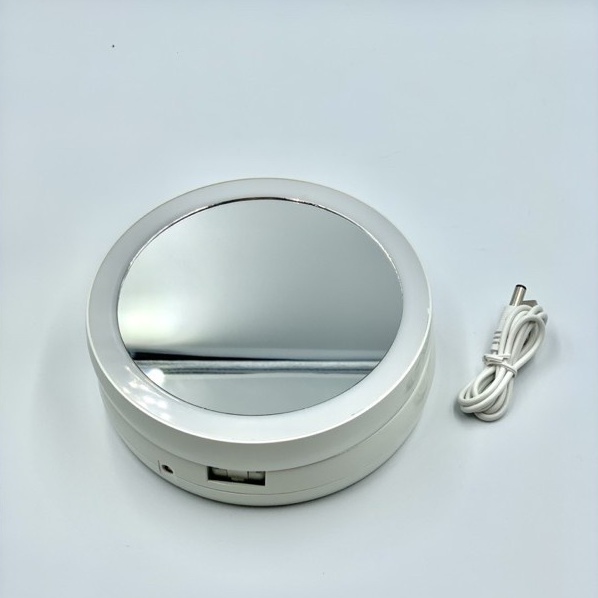 Giới thiệu Gương Trang Điểm Đèn LED Xoay 2 Mặt Gấp Gọn Để Bàn Có Khay Chứa Đồ (Tặng Dây Sạc)