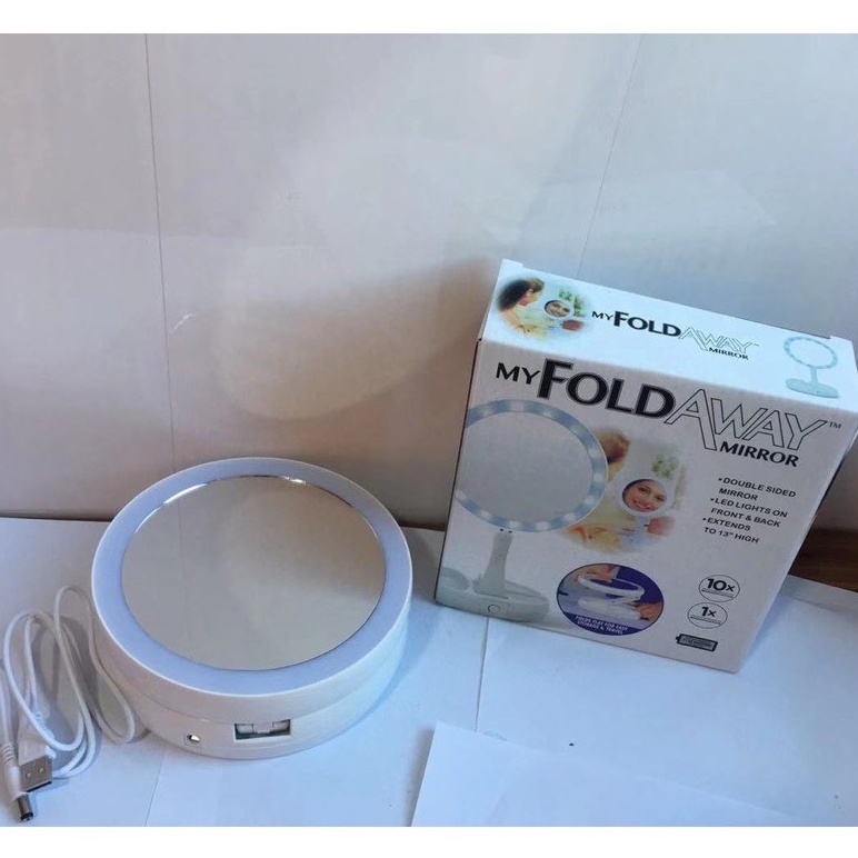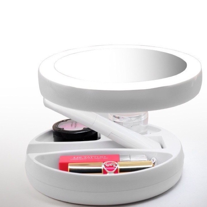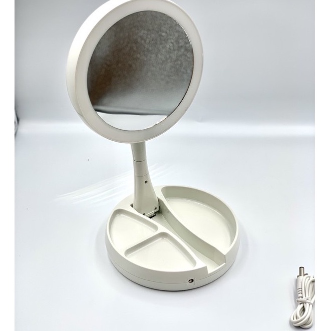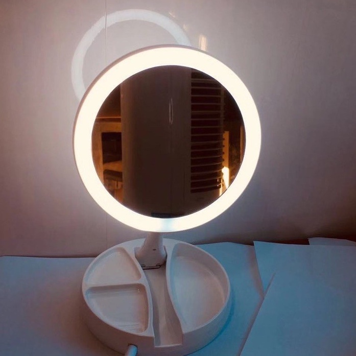 Nhà cửa & Đời sống > Trang trí nhà cửa > Gương || Gương Trang Điểm Đèn LED Xoay 2 Mặt Gấp Gọn Để Bàn Có Khay Chứa Đồ (Tặng Dây Sạc)Còn hàng
