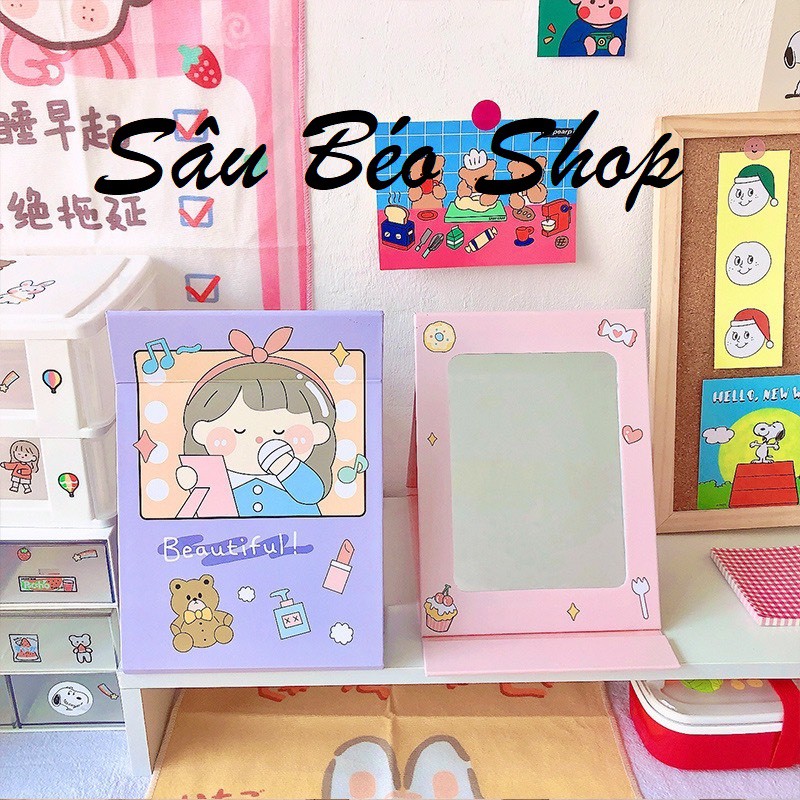 ☘☘ Gương thiết kế bao bọc bằng giấy êm ái, hạn chế va đập, vỡ vụn cả gương và vỏ nhaMàu sắc kute đáng yêu, các bạn ko chỉ ngắm mình qua gương mà ngắm cả chiếc gương nha