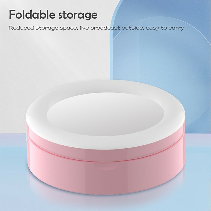 Gương trang điểm gấp gọn có đèn Led Livestream tích hợp giá đỡ và kẹp điện thoại