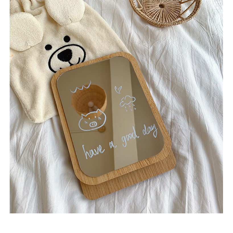 - Gương có vỏ bọc ngoài làm bằng chất liệu gỗ thịt tự nhiên, gương sáng đều dày dặn khi soi thấy hình ảnh thật của khuôn mặt, xứng đáng làm người bạn thân thiết không thể thiếu của mỗi cô gái, chàng trai.