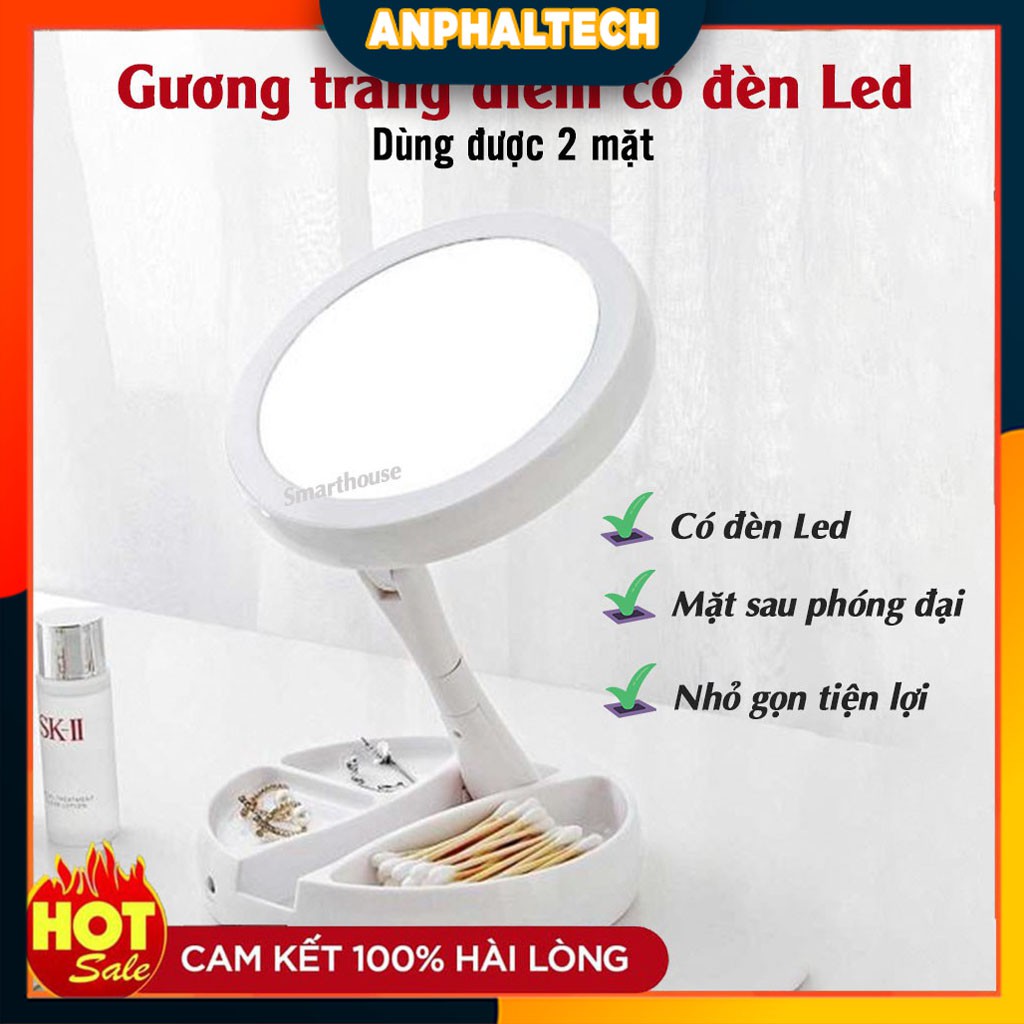 Nhà cửa & Đời sống > Trang trí nhà cửa > Gương || Gương Trang Điểm Make Up Có Đèn Led 2 Mặt, Mặt Sau Phóng Đại Gấp Gọn Tiện Lợi Xoay 360 ĐộCòn hàng