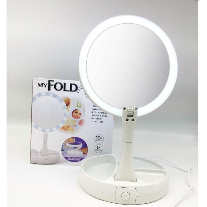 Gương trang điểm có đèn 2 mặt MyFoldAway loại dùng pin và cắm điện trực tiếpMột chiếc gương tiện lợi luôn là một món đồ không thể thiếu đối với các chị em phụ nữ. Gương trang điểm có đèn My FoldAway là chiếc gương như thế. Sản phẩm có thiết kế cao cấp, gấp gọn tiện lợi, với chiếc gương này các chị em có thể thoải mái trang điểm mất kì nơi đâu với độ tiện lợi mà nó mang lại.