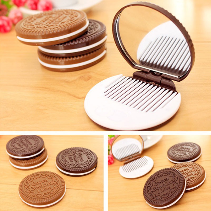 Gương Trang Điểm Nắp Gập Kèm Lược Hình Bánh Cookie Dễ Thươngnhỏ gọn tiện dụng dể mang theo khi đi du lịch