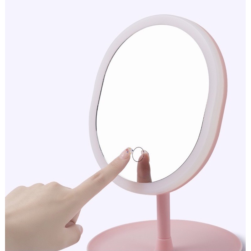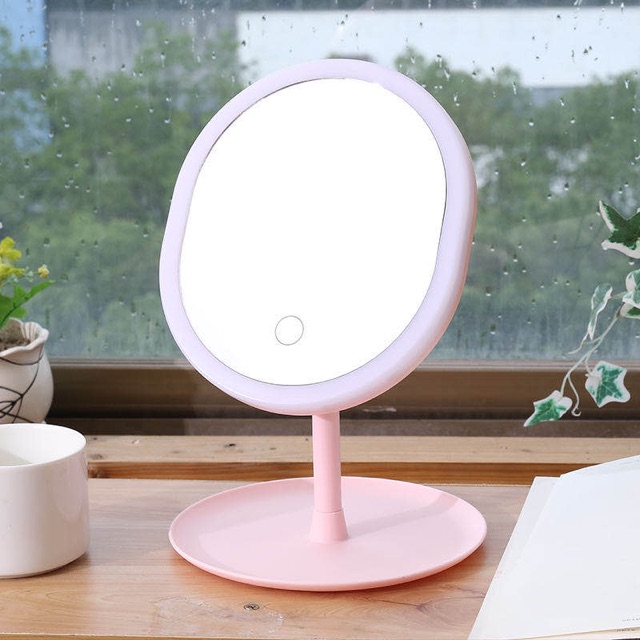 Gương Trang Điểm Oval Đèn LED Ánh Sáng 3 Màu Cảm Ứng (Kèm Cáp Sạc)