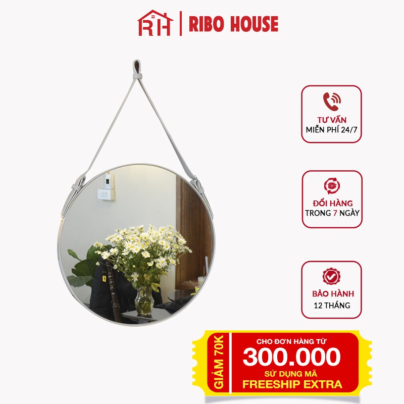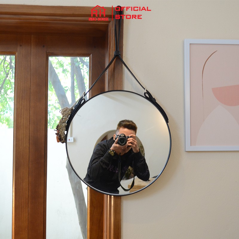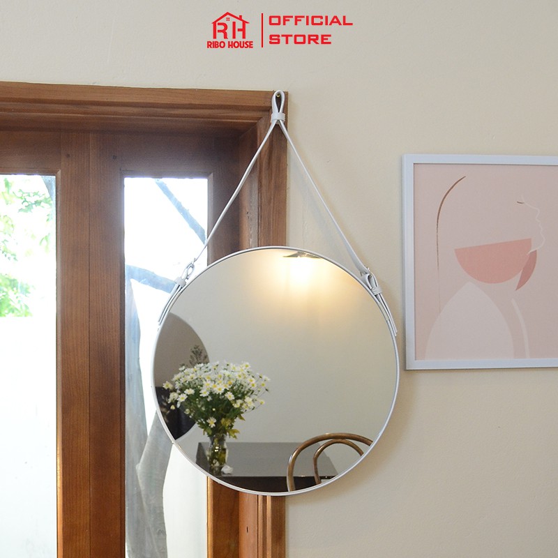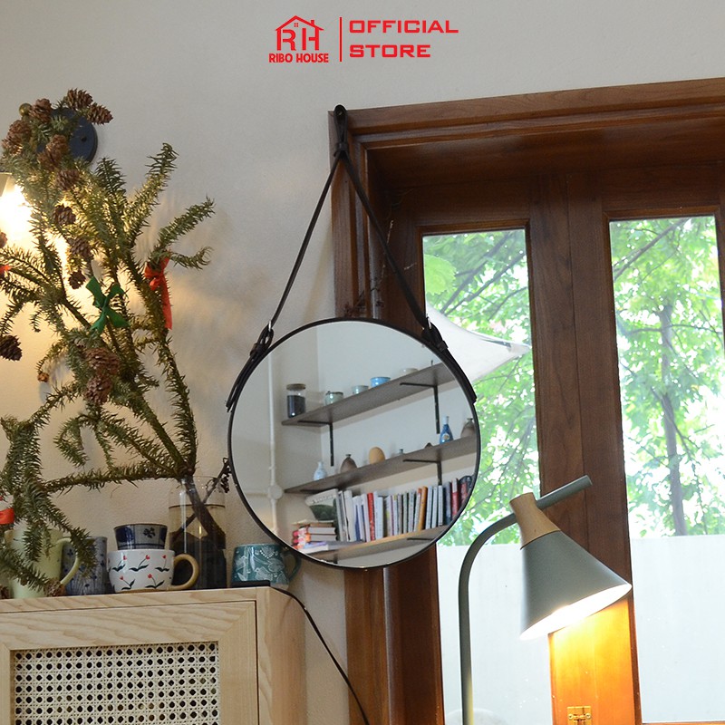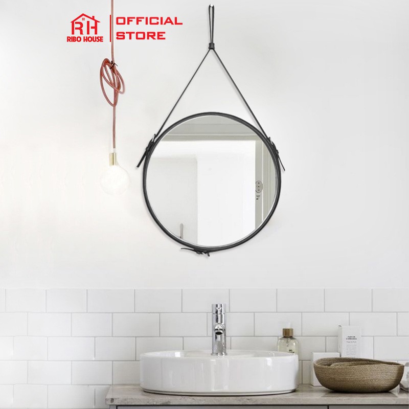 Gương trang điểm RIBO HOUSE dây da D40 kính cường lực gương treo tường trang trí homestay nhà nghỉ khách sạn cafe RIBO41