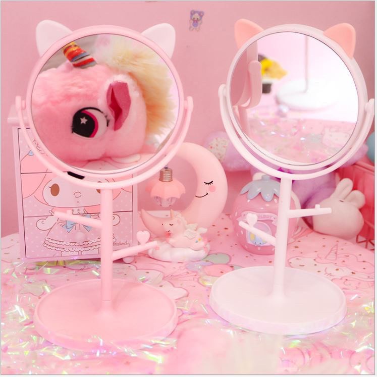 Gương trang điểm tai mèo siêu dễ thương, Gương để bànGương trang điểm tai mèo siêu dễ thương, Gương để bàn