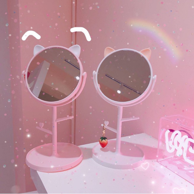 Gương tai mèo dễ thương dễ thương, thỏa thuận mãn trái tim cô gái của bạn, gương HD, xoay 360 °, có thể lưu trữ đồ trang sức, khay ổn định và đặt các đồ vật không dễ treo như vòng tay, nhẫn, khuyên tai…