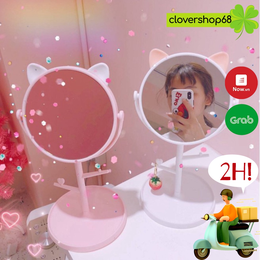 Gương trang điểm tai mèo xoay 360 độ để bàn