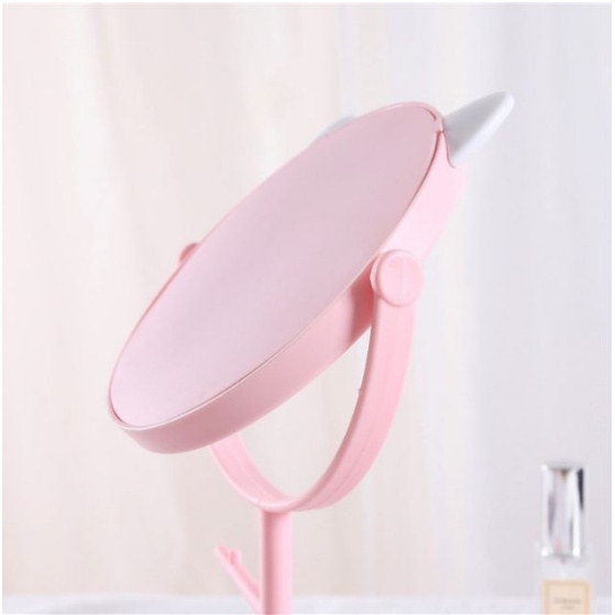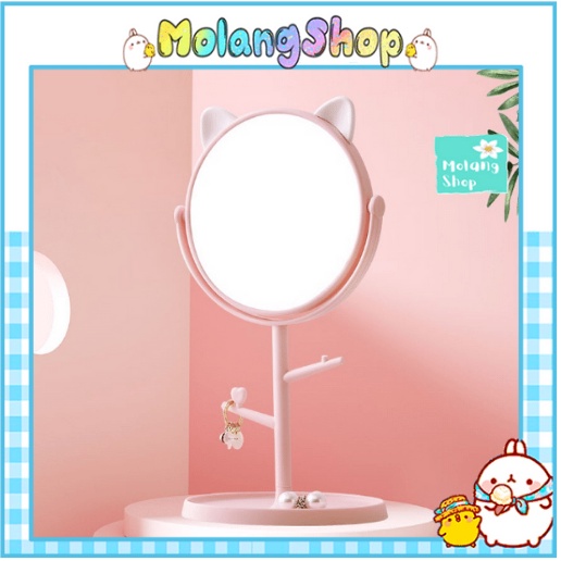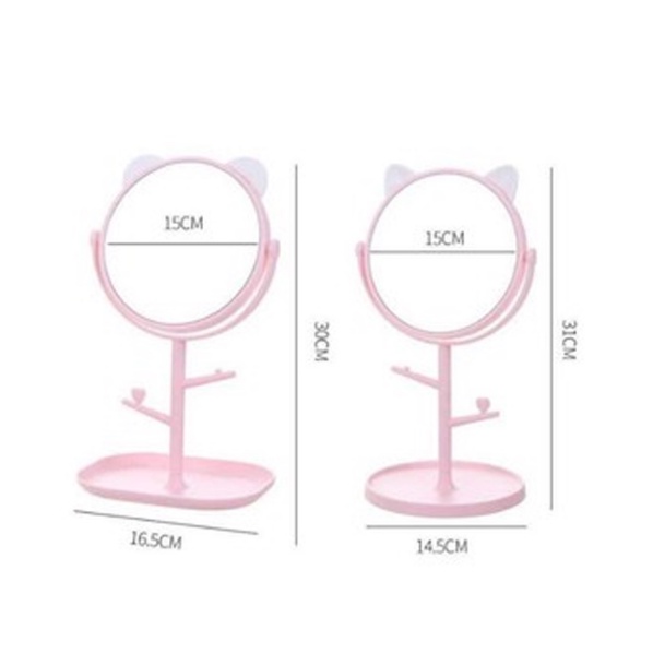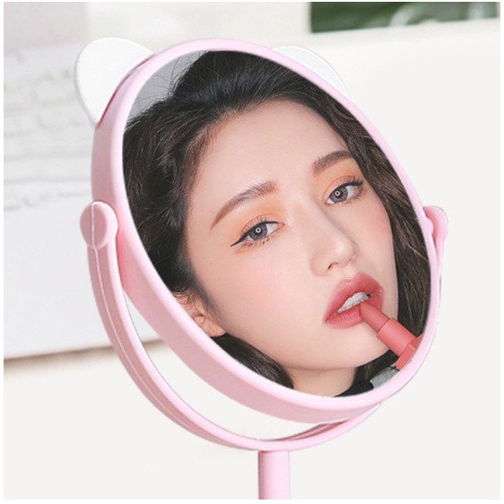 Gương trang điểm tai mèo xoay 360 độ để bàn (trắng hoặc hồng) Molangshop