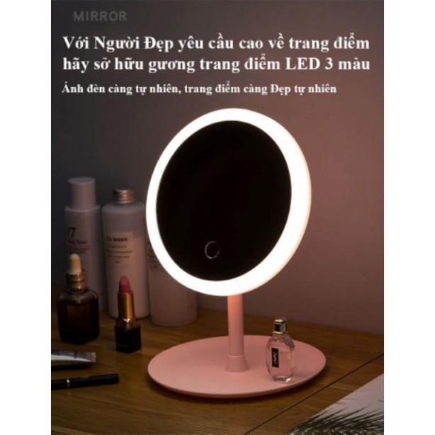 GƯƠNG TRANG ĐIỂM TRÒN ĐỂ BÀN CÓ ĐÈN LED CẢM ỨNG - 3 CHẾ ĐỘ