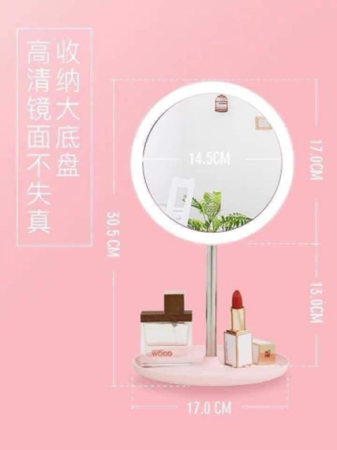 💄 Thân gương và đế gương, sử dụng chất liệu nhựa ABS. Chân gương thiết kế đế tròn rộng, chị em có thể tận dụng để thỏi son, bút kẻ mặt, cặp tóc ...