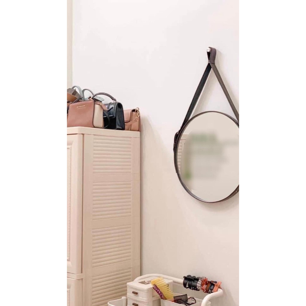 #bàn_trang_điểm_gương_tròn #gương_dây_da_treo_tường #guongtrondayden
