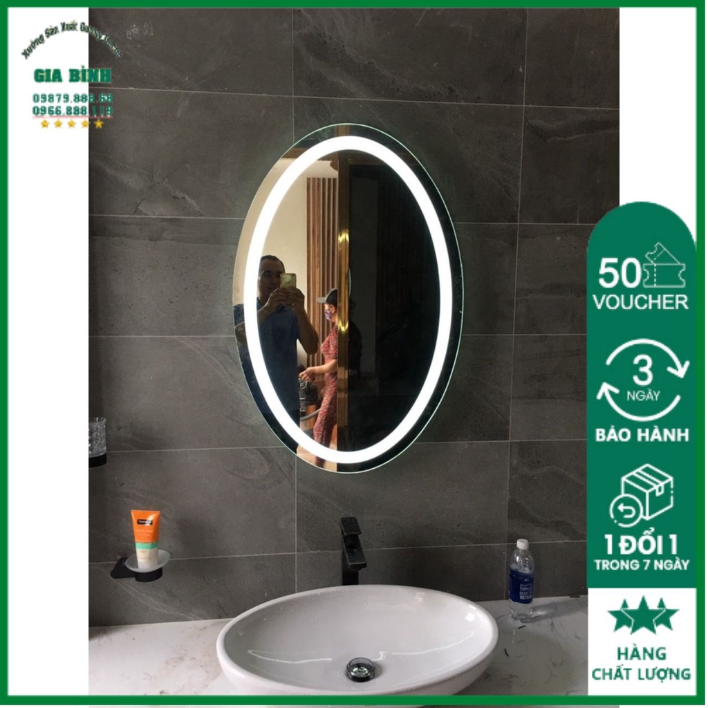 Gương treo tường phòng tắm hình elip led viền trong ánh sáng trắng vàng trang trí nhà cửa Gương Decor Giá Tại Xưởng