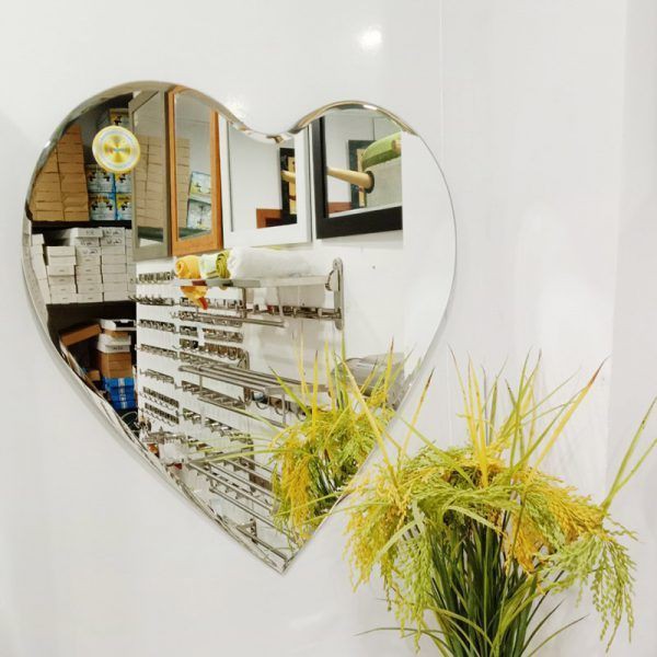 - Thiết kế gương hình trái tim chắc chắn sẽ thu hút mọi ánh mắt trầm trồ của người xem. Đơn giản vì bản thân gương đã tạo ra nét khác biệt độc đáo so với các loại gương truyền thống.