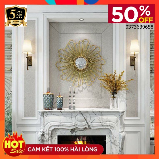 Gương Treo Tường Trang Trí Nhà Cửa Thân Kim Loại Mạ Vàng Mã 2401-Gương Soi Phong Thủy -Decor Tường phong Cách Mới-kt 100cm► Mã sản phẩm 2401
