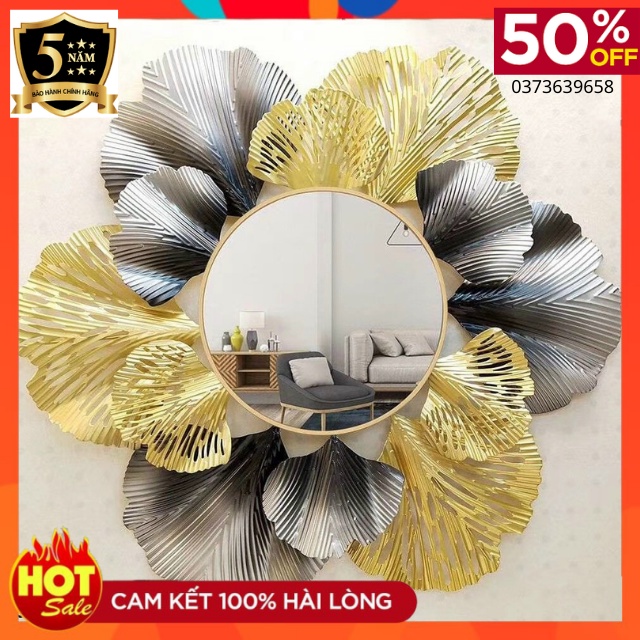 Gương Treo Tường Trang Trí Nhà Cửa Thân Kim Loại Mạ Vàng Mã 988-Gương Soi Phong Thủy -Decor Tường phong Cách Mới-kt 70cm