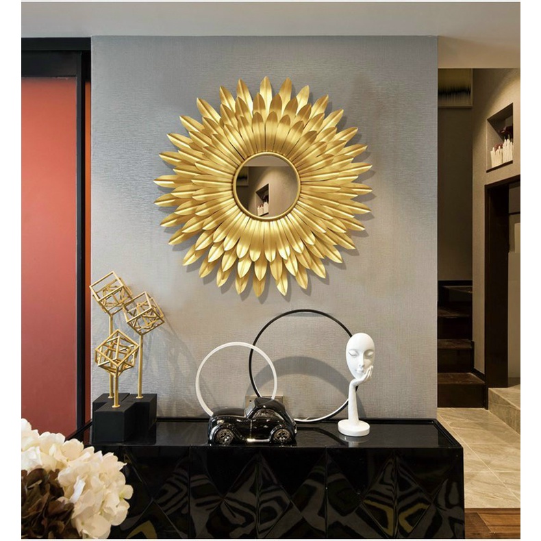 Gương Treo Tường Trang Trí Nhà Cửa Thân Kim Loại Mạ Vàng Mã 914-Gương Soi Phong Thủy -Decor Tường phong Cách Mới-kt 80cm► Mã sản phẩm 914