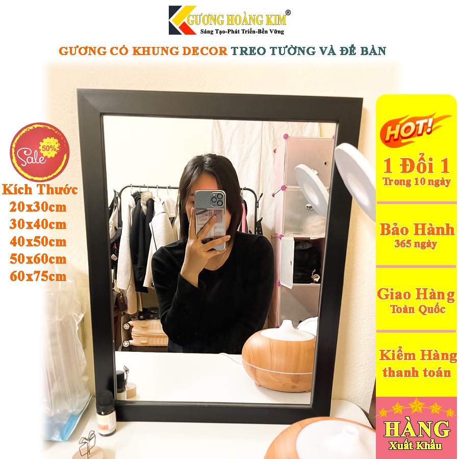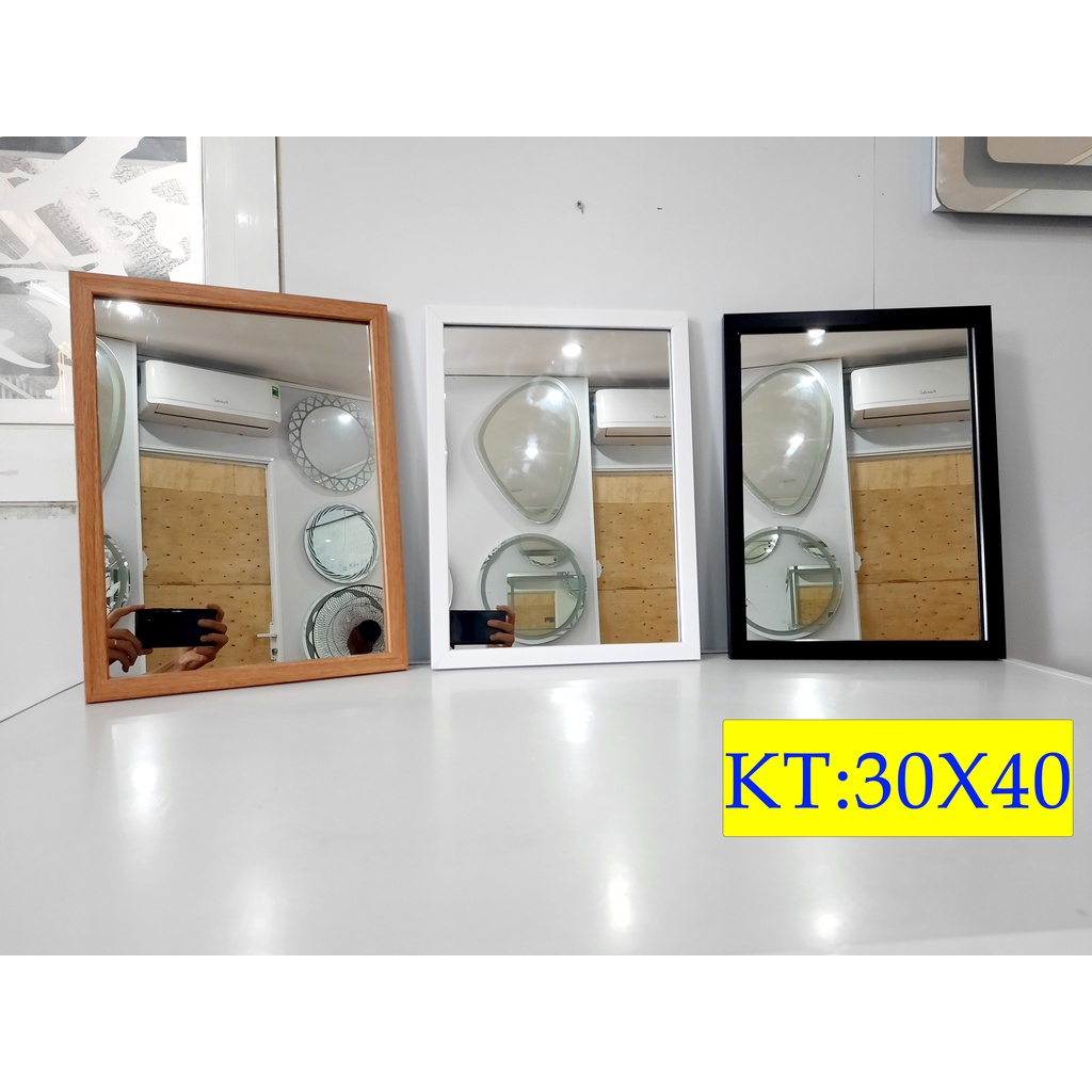 gương treo tường trang trí decor màu trắng đen vân gỗ kích thước 30x40 cm guonghoangkim mirror HK5001