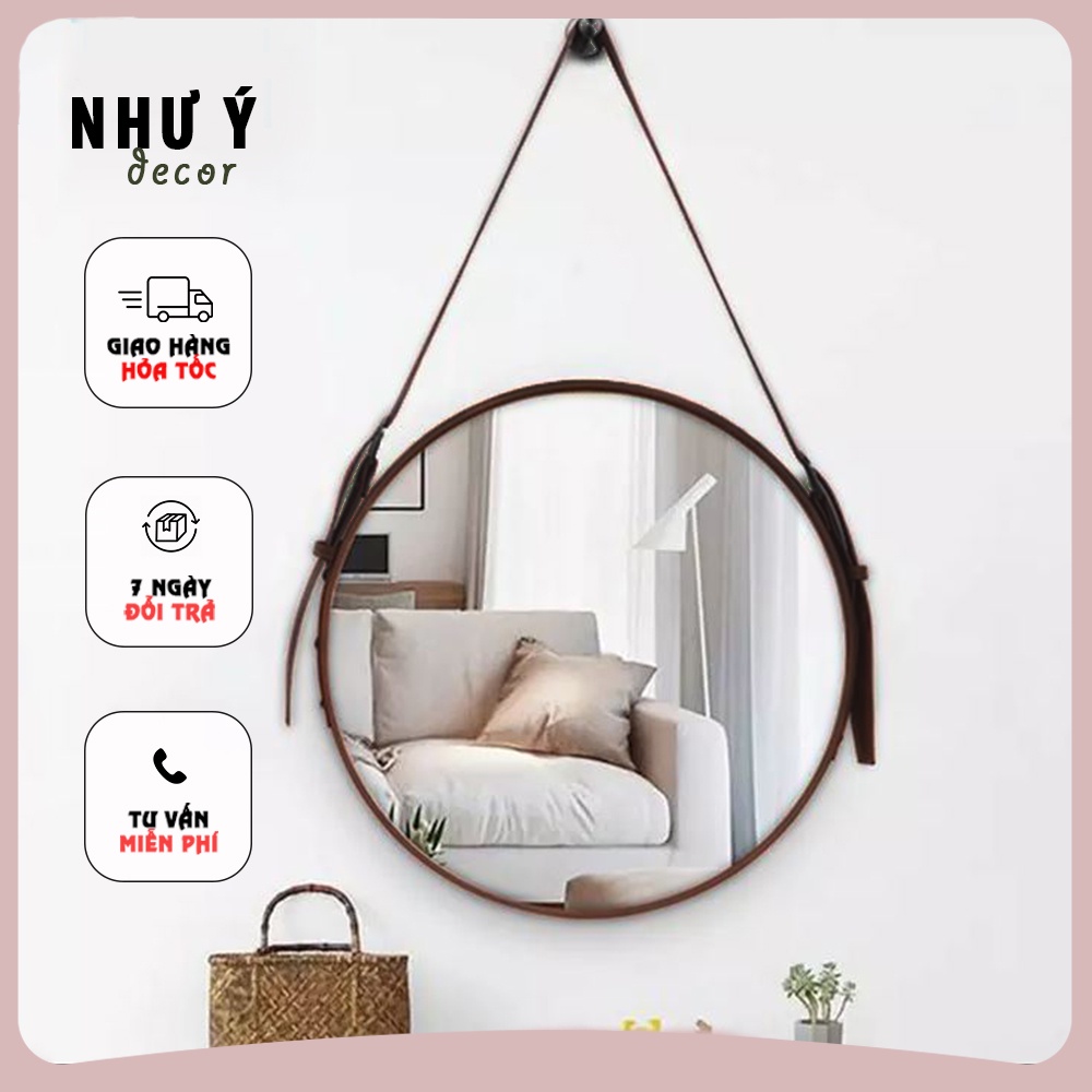 - Gương tròn viền da treo tường cao cấp là sản phẩm trang trí nội thất hiện đại, là phụ kiện trang trí phòng tắm, phòng ngủ, bàn trang điểm, phòng khách mang phong cách hiện đại và trẻ trung rất được ưa chuộng ngày nay.