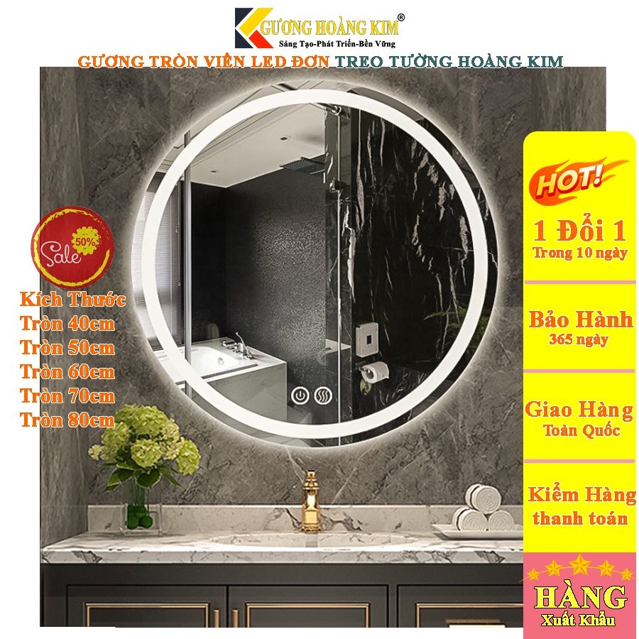 Gương tròn cảm ứng đèn led treo tường trang điểm makeup phòng wc nhà tắm thông minh kt tròn 60,70cm guonghoangkim HK0001