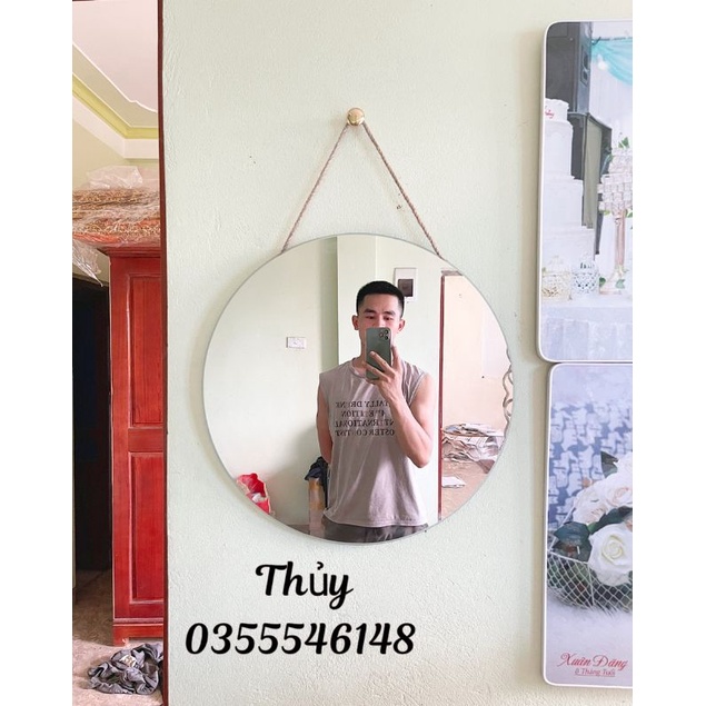 Gương tròn dán tường ❌𝐇𝐚̀𝐧𝐠 𝐜𝐨́ 𝐬𝐚̆̃𝐧 ❌ gương treo dây đay Decor tiện lợi