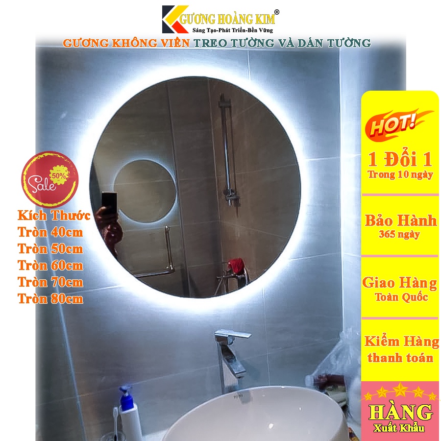 Gương tròn nhà tắm cảm ứng đèn led trang điểm makeup thông minh treo tường kích thước tròn 60,70cm guonghoangkim HK0003