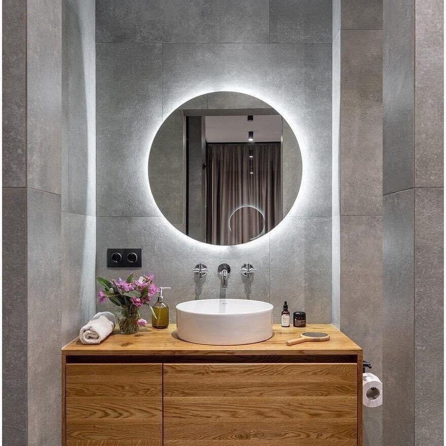 Gương tròn đèn LED cảm ứng là sự kết hợp hoàn hảo giữa chiếc gương soi với hệ thống đèn led phía sau tạo nên hiệu ứng ánh sáng theo 2 kiểu cụ thể đó là: ánh sáng hắt hậu gương và ánh sáng chiếu qua lớp gương đã được mài vệt cát.