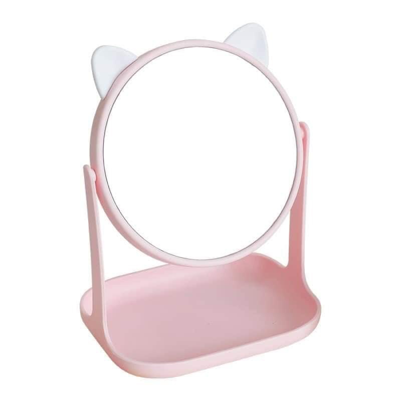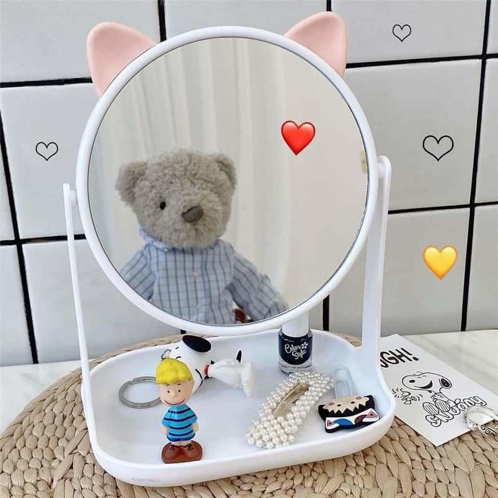 Gương Tai Mèo để bàn trang điểm, có giá đựng đồ mini cực kỳ tiện lợi luôn