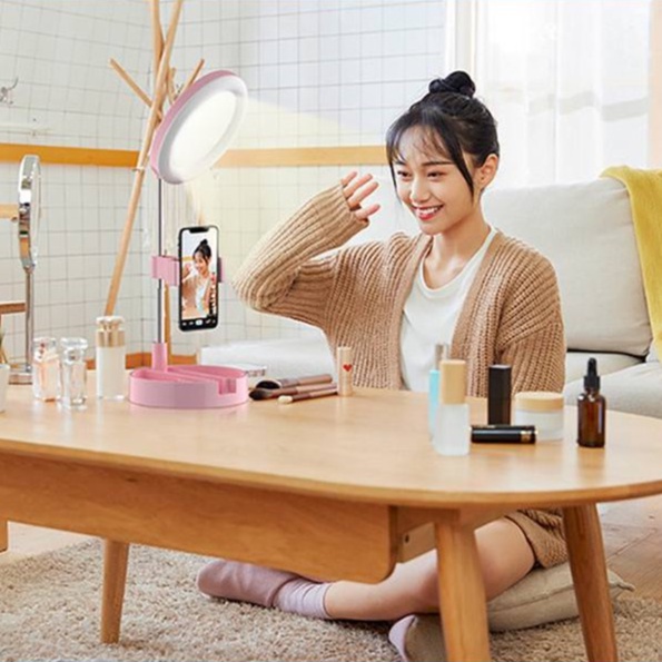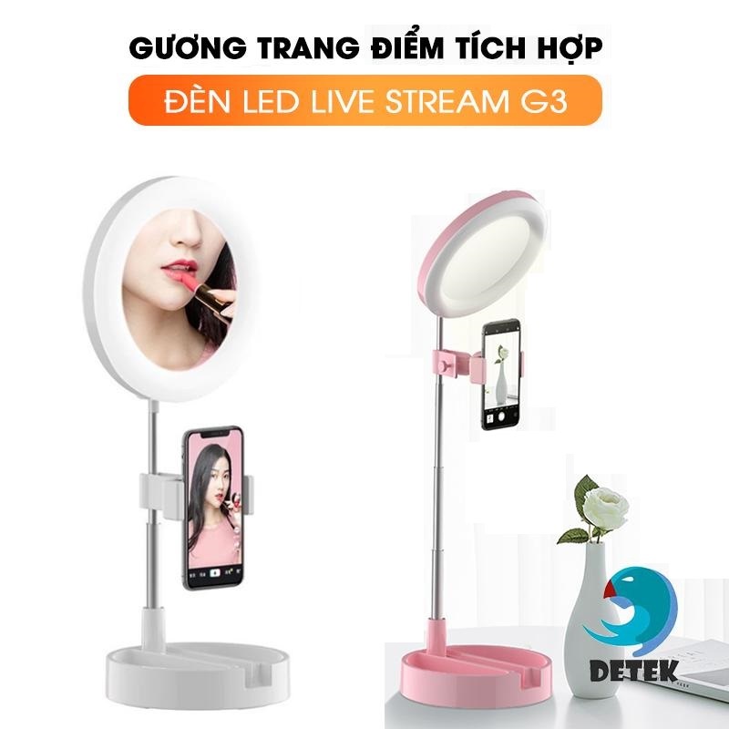 Giới thiệu Gương Tròn Trang Điểm Có Đèn Led Trợ Sáng, Đèn Chỉnh 3 Màu, Tăng Giảm Chiều Cao, Gấp Gọn, Livestream, Tiktok, Bigo, FB