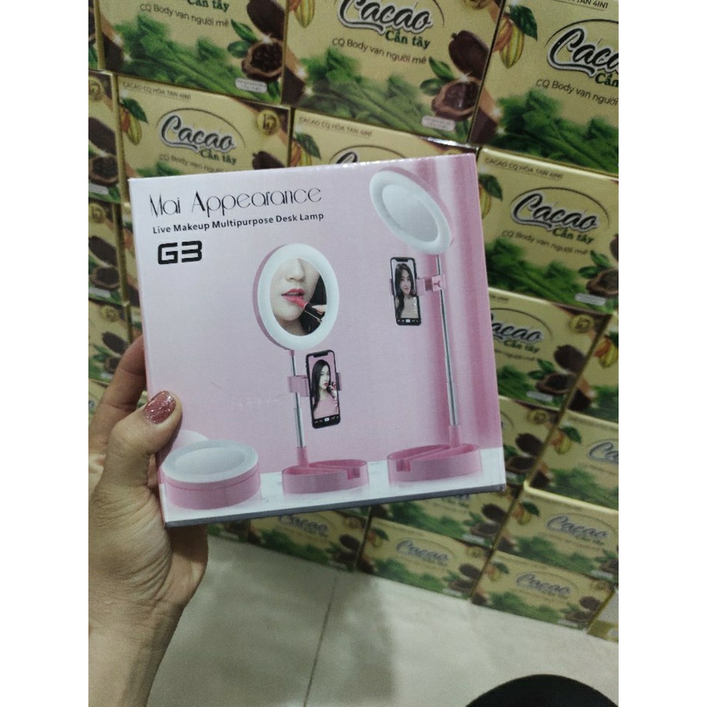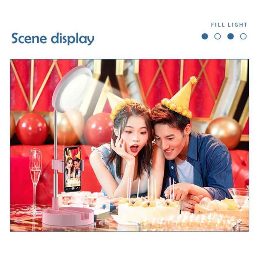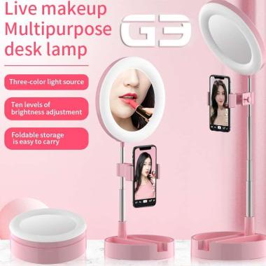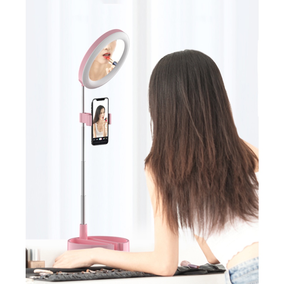 Gương Tròn Trang Điểm Có Đèn Led Trợ Sáng, Đèn Chỉnh 3 Màu, Tăng Giảm Chiều Cao, Gấp Gọn, Livestream, Tiktok, Bigo, FB