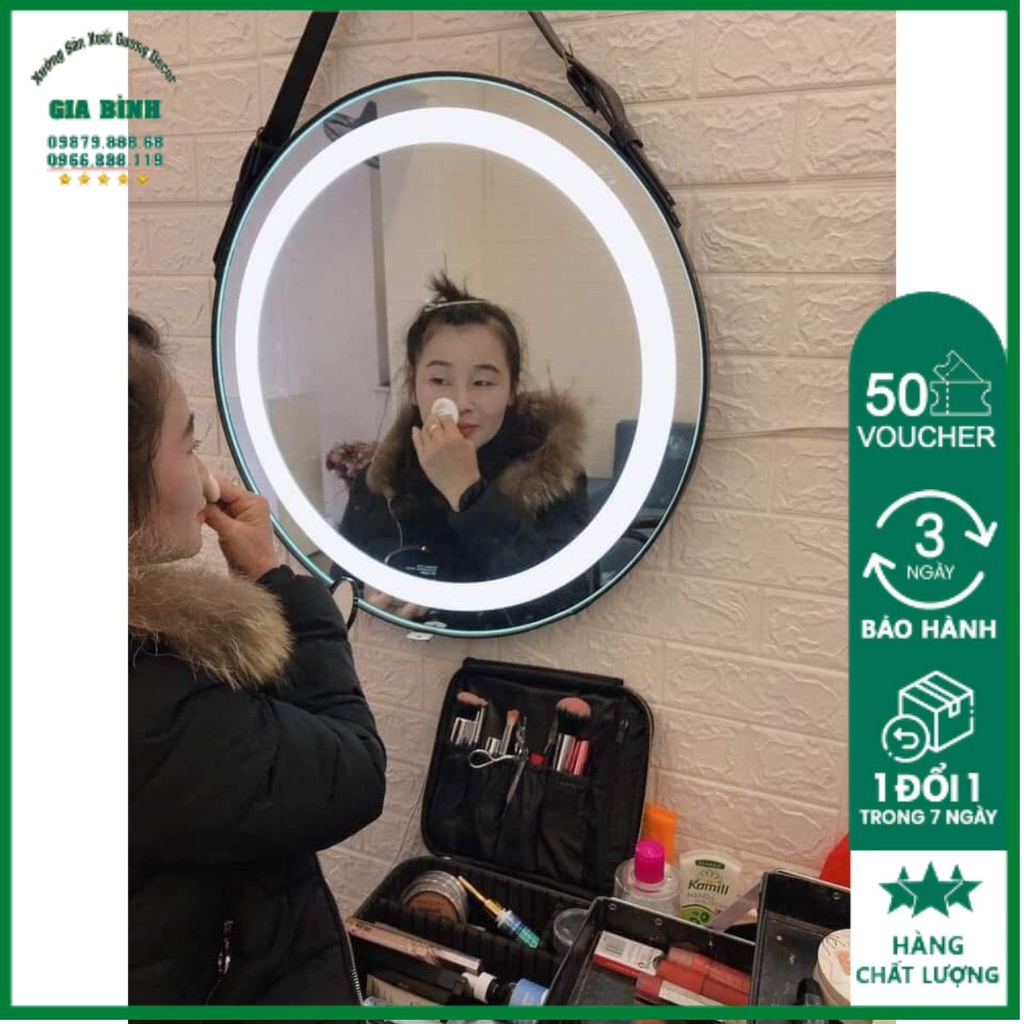 - Gương soi treo tường viền LED là sản phẩm đang được nhiều khách hàng yêu thích. Được kiến trúc sư thiết kế nội thất sử dụng thường xuyên vào thiết kế của mình. Chiếc gương tròn tạo cảm giác thoải mái không góc cạnh tạo điểm nhấn cho bức tường đơn điệu trở nên ấn tượng hơn.