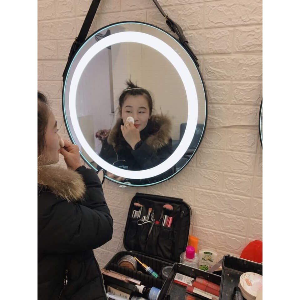 Gương tròn treo tường cảm ứng đèn led dây da bò đen nâu có ánh sáng trắng vàng cho nhà tắm phòng ngủ Gương Decor1. Thông tin sản phẩm