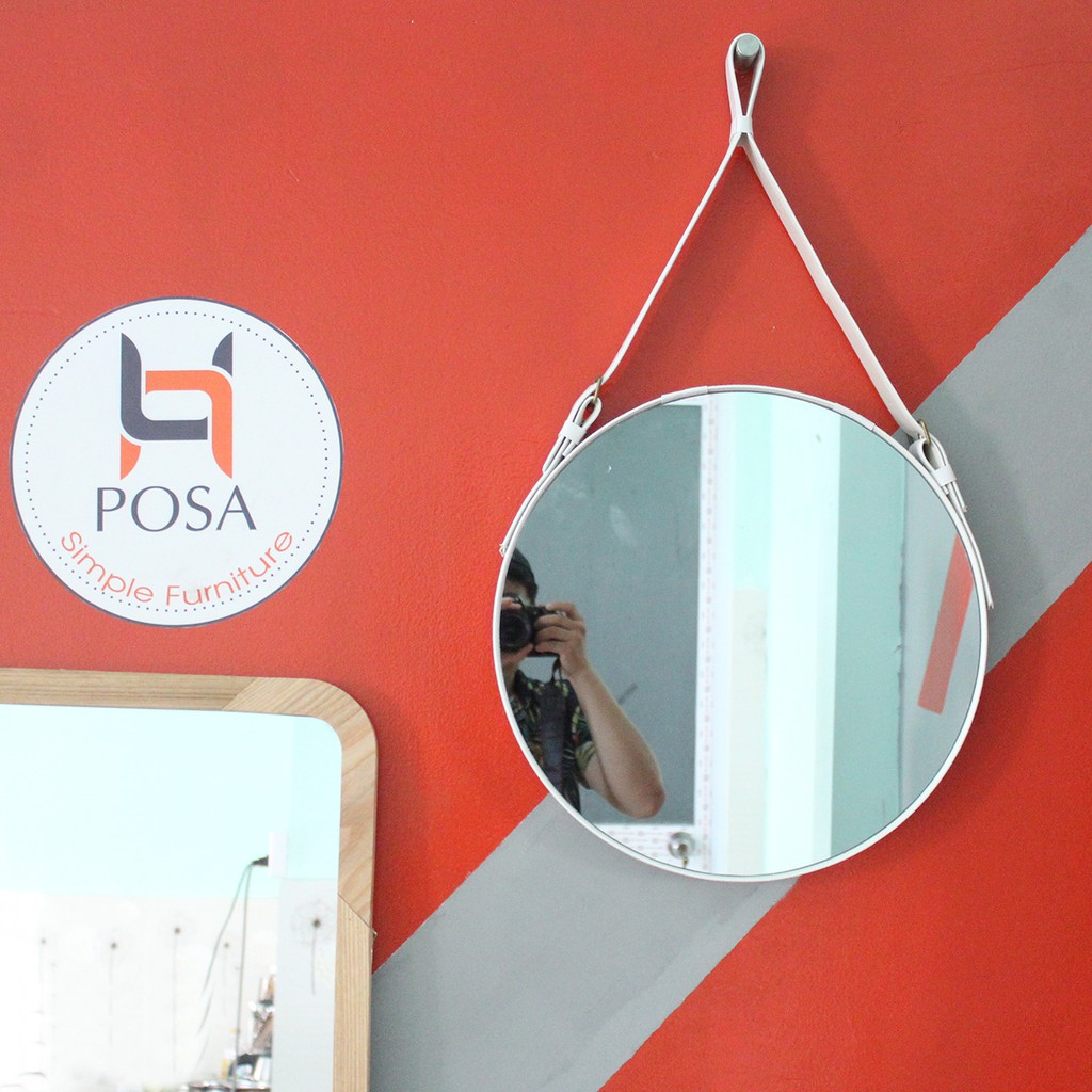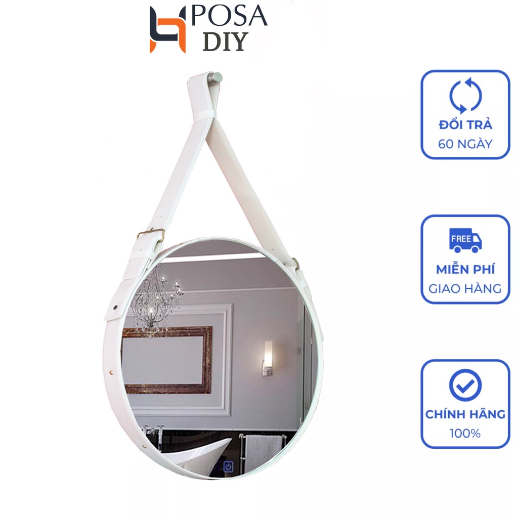 Giới thiệu Gương tròn treo tường da trắng Posa