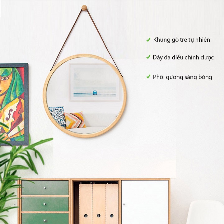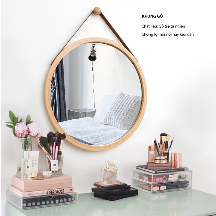 Giới thiệu Gương tròn treo tường dây da cao cấp