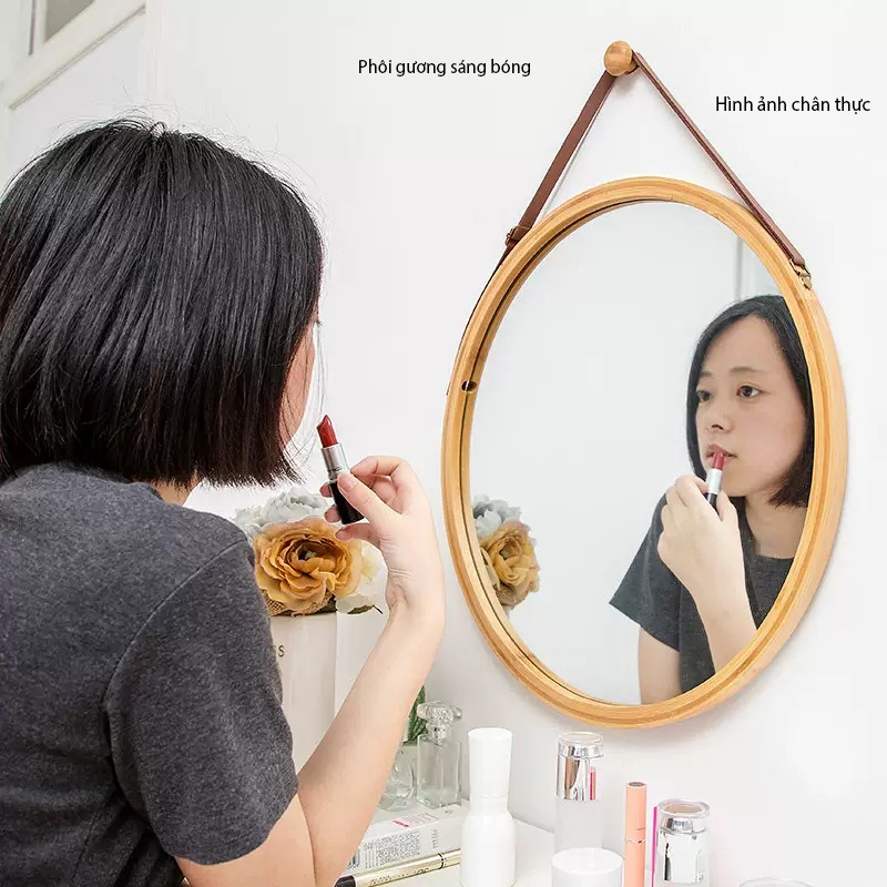 Gương cao cấp, sáng bóng hình ảnh đẹp chân thực.Thiết kế khung gỗ tre tự nhiên chắc chắn, tinh xảo không mối nối như các loại khung gỗ treo thông thường