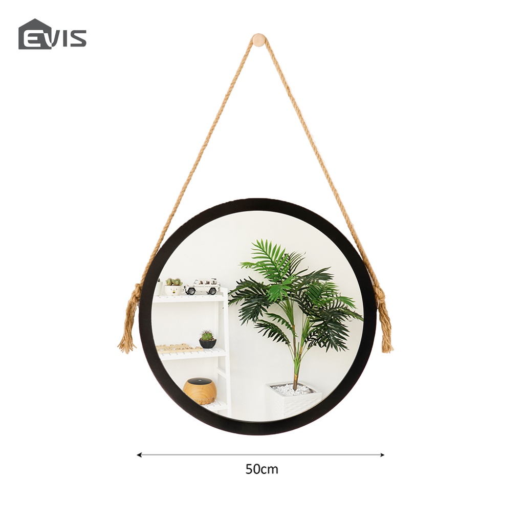 Gương Tròn Treo Tường Evis Home - Thiết Kế Dây Treo Sang Trọng - Đường Kính 50cm - Màu Đen