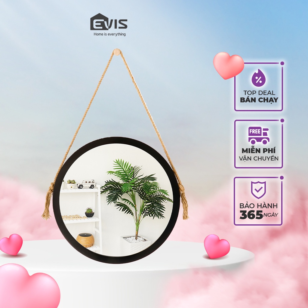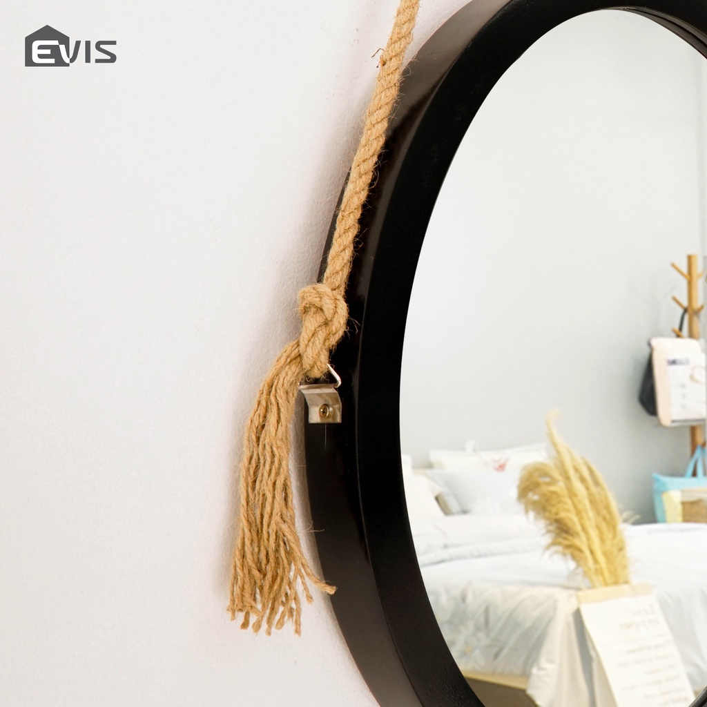 Giới thiệu Gương Tròn Treo Tường Evis Home - Thiết Kế Dây Treo Sang Trọng - Đường Kính 50cm - Màu Đen