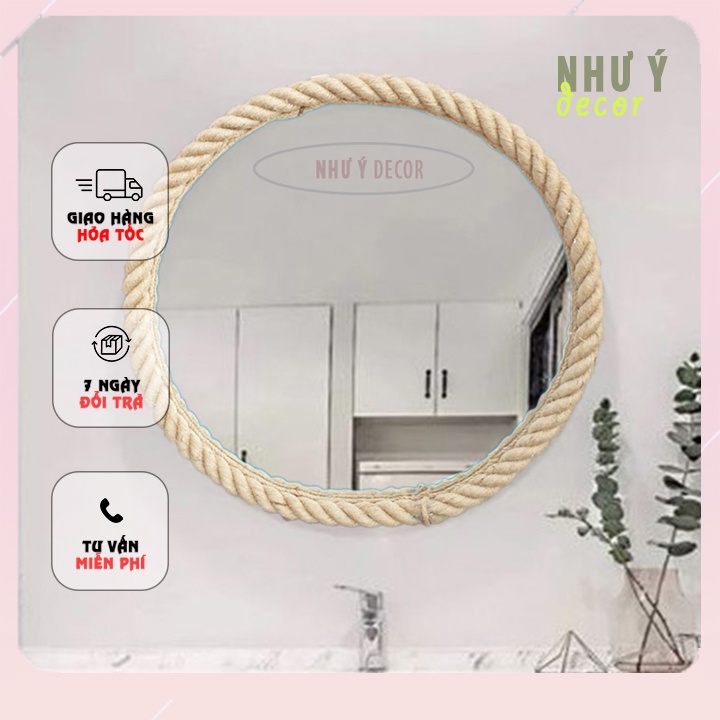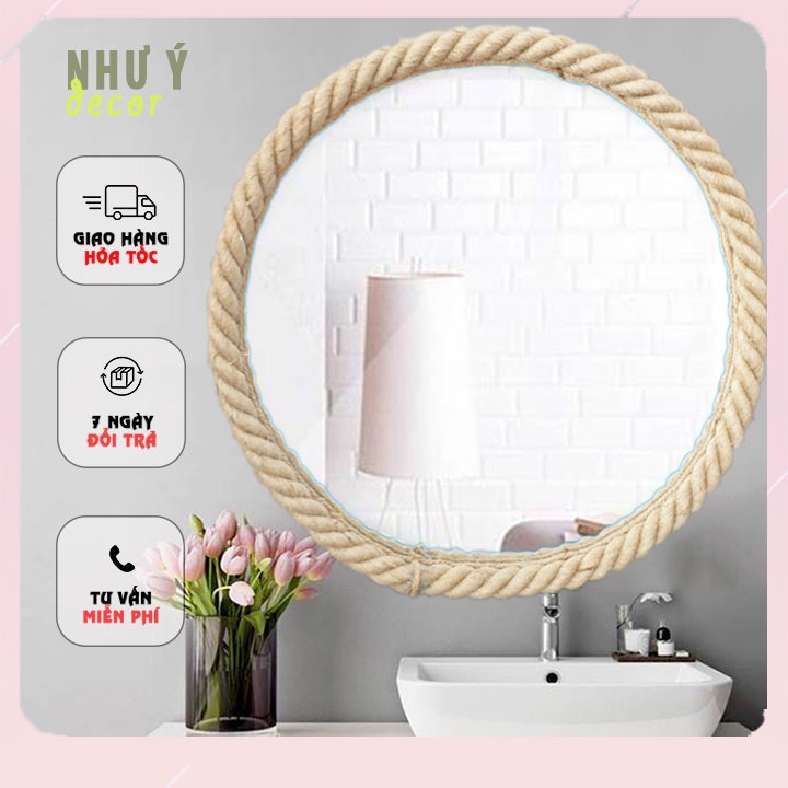 Gương Tròn Treo Tường⚡ FREE SHIP⚡ Viền Dây Thừng - Gương Tròn Decor Nhà Hàng Khách Sạn - Gương Tròn Trang Điểm