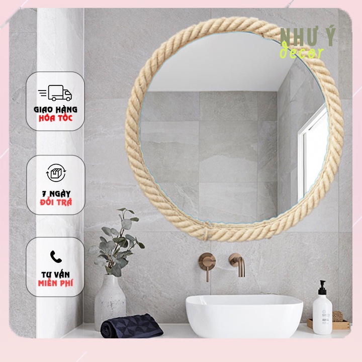 Gương tròn viền dây thừng thích hợp cho nhiều loại decor khác nhau, Decor kiểu mộc hay sang trọng điều được ạ.